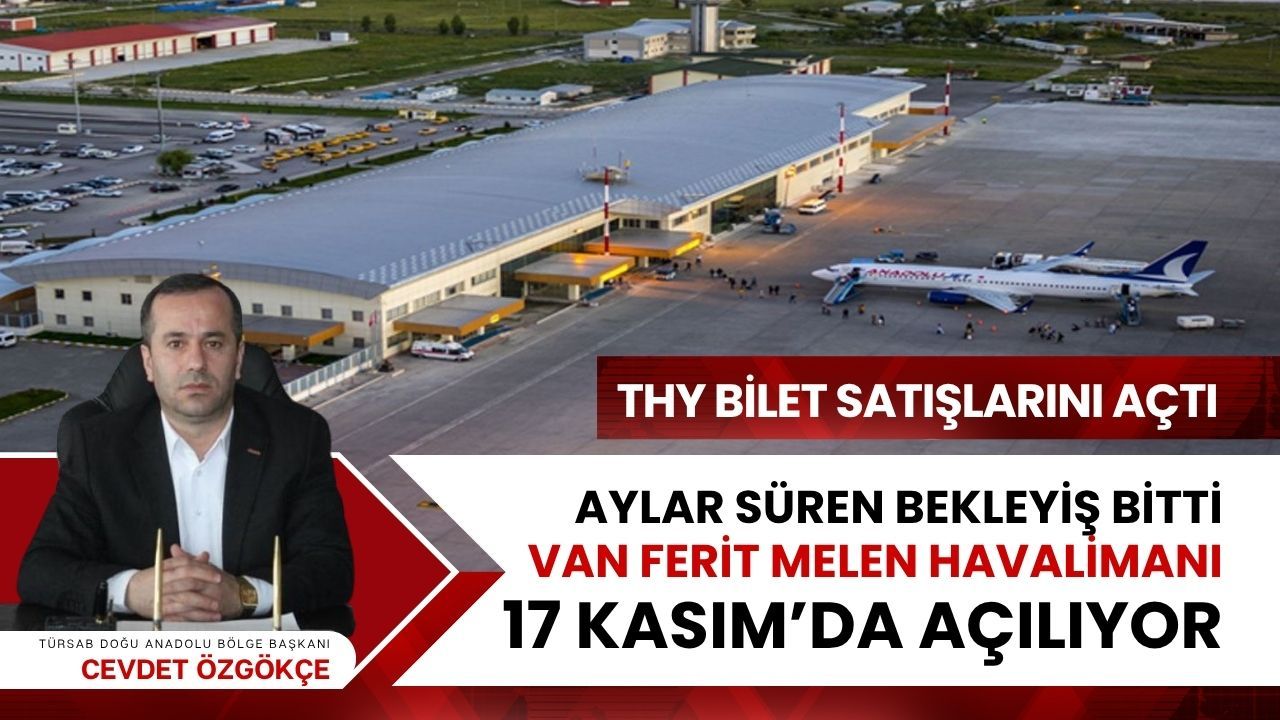 TÜRSAB Doğu Anadolu Bölge Başkanı Cevdet Özgökçe, sosyal medya hesabı üzerinden yaptığı paylaşımla müjdeyi kıymetli hemşehrilerine duyurdu. Özgökçe, "Van Ferit Melen Havalimanı 17 Kasım itibarıyla satışa açıldı. Uçuşlar bırakıldı, hadi hayırlı olsun." ifadelerini kullanarak, aylardır süren ulaşım aksaklıklarının son bulduğunu ilan etti. Havalimanının yeniden aktifleşmesiyle birlikte Van’a olan hava trafiğinin canlanması bekleniyor.