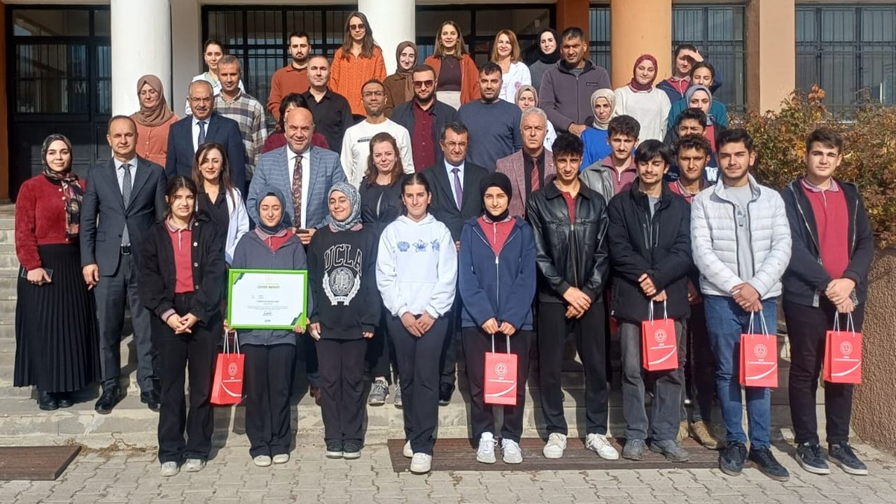 Milli Eğitim Bakanı Yusuf Tekin tarafından verilen ‘Çevre Beratı’ ödülü, okul yönetimine ve öğrencilere takdim edildi.