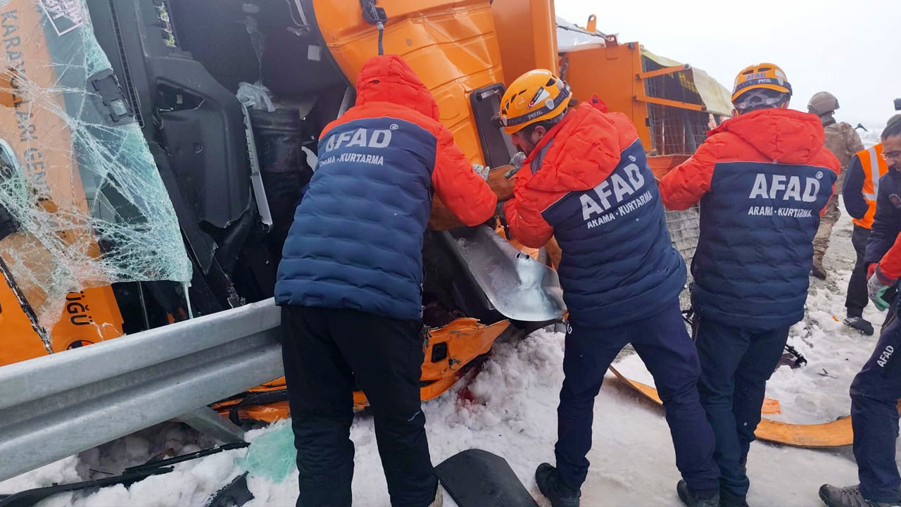Yoğun kar yağışının ardından yol açma ve temizleme çalışması yapan Karayolları 11. Bölge Müdürlüğü’ne bağlı 115. Erciş Şube Şefliği ekiplerine ait kar küreme aracı, henüz bilinmeyen bir nedenle kontrolden çıkarak refüje çarptı ve devrildi.