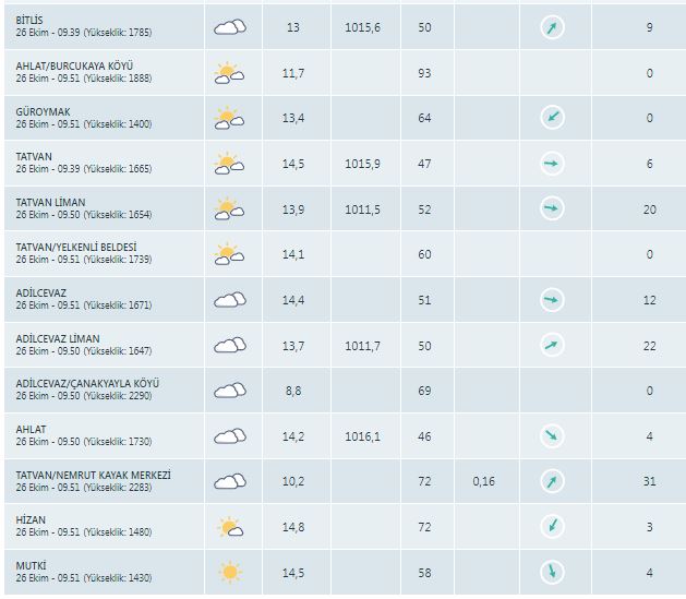 Meteoroloji Bölge Müdürlüğü'nden Bölge genelinde havanın parçalı ve çok bulutlu, öğle saatlerinden itibaren Muş ve Van çevrelerinde aralıklı sağanak yağmurlu olması beklenmektedir.