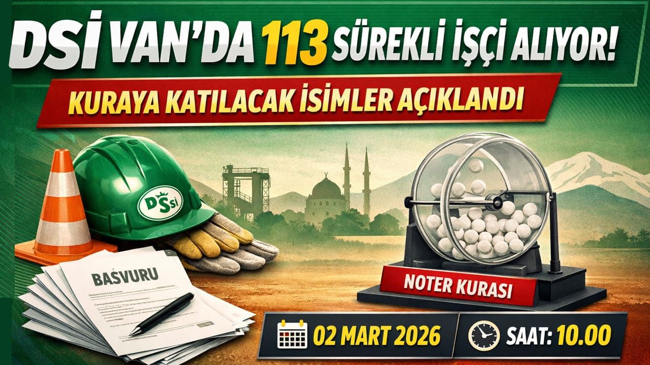 Devlet Su İşleri 17. Van Bölge Müdürlüğü tarafından yapılan açıklamaya göre, evrak incelemesi sonucunda Noter Kurasına katılmaya hak kazanan adaylar ile evrak kontrolü yapılmadan doğrudan kuraya tabi tutulacak olan beden işçisi, düz işçi ve akaryakıtçı, pompacı kadrolarına başvuran adayların listesi yayımlandı.