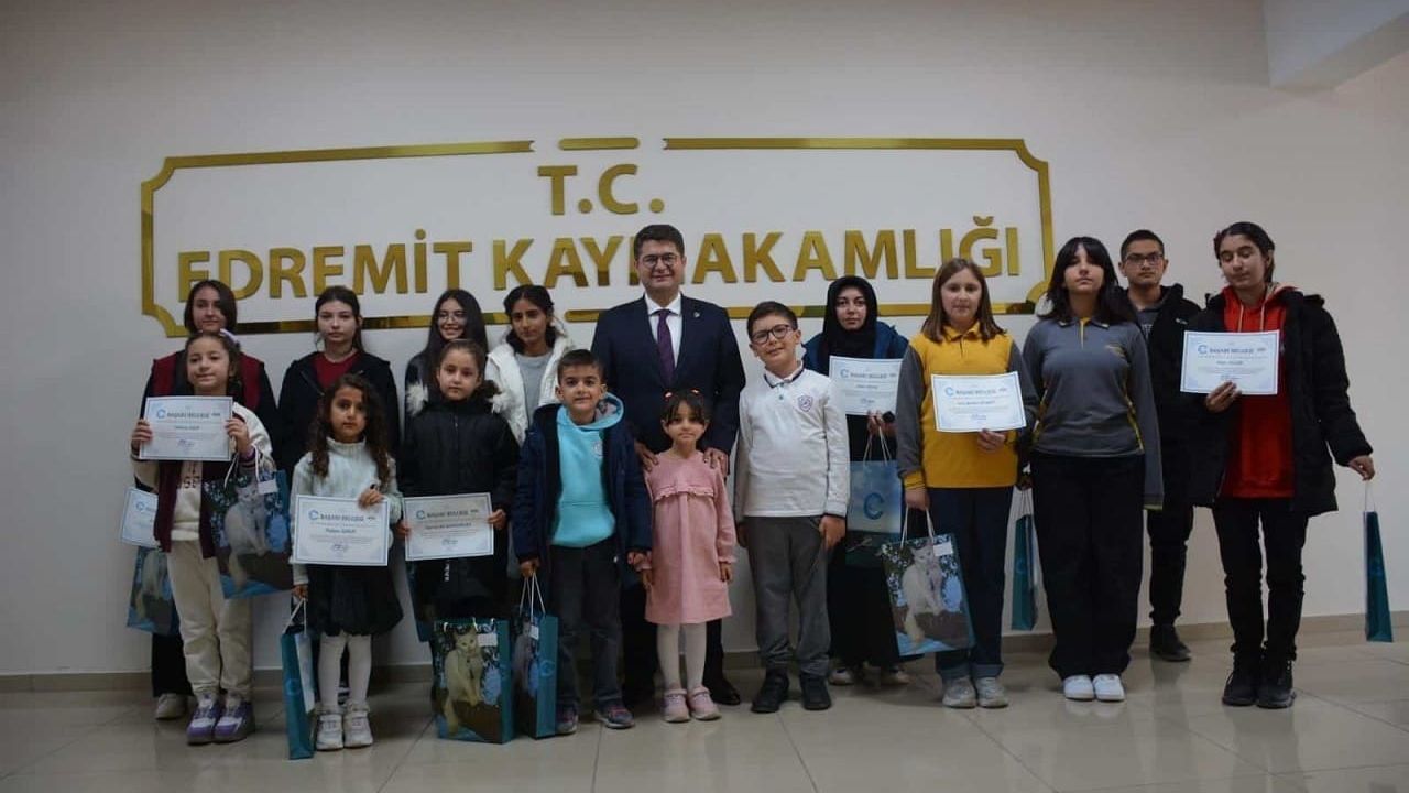 Van Valiliği himayelerinde yürütülen KitapVan Projesi kapsamında gerçekleştirilen ilçe düzeyi 1. Kitap Okuma Yarışması sonuçlandı. Bu kapsamda farklı yaş kategorilerinde Edremit’te düzenlenen yarışmada birincilik elde eden öğrenciler, başarı belgeleri ve ödüllerini almak üzere Edremit İlçe Kaymakamı Ömer Ahmet Özdemir ile bir araya geldi.