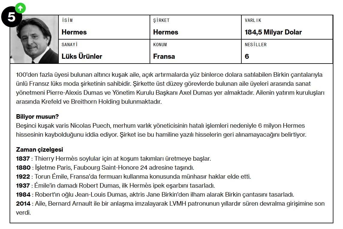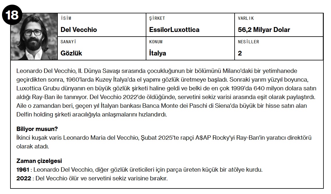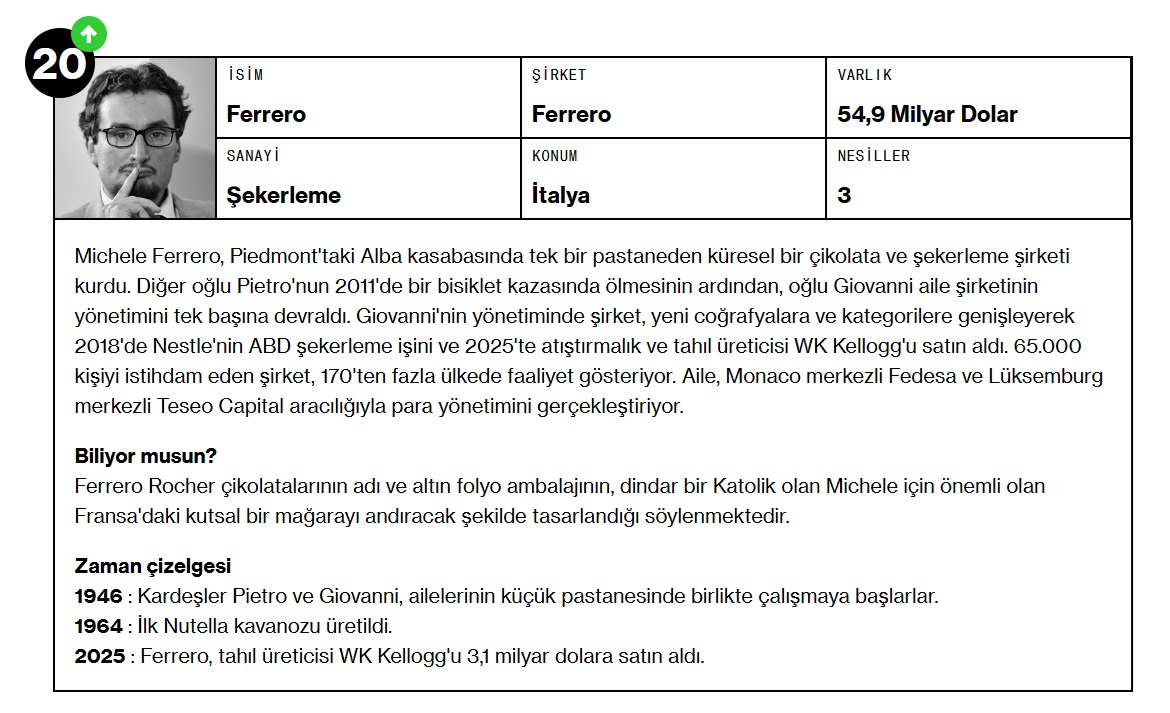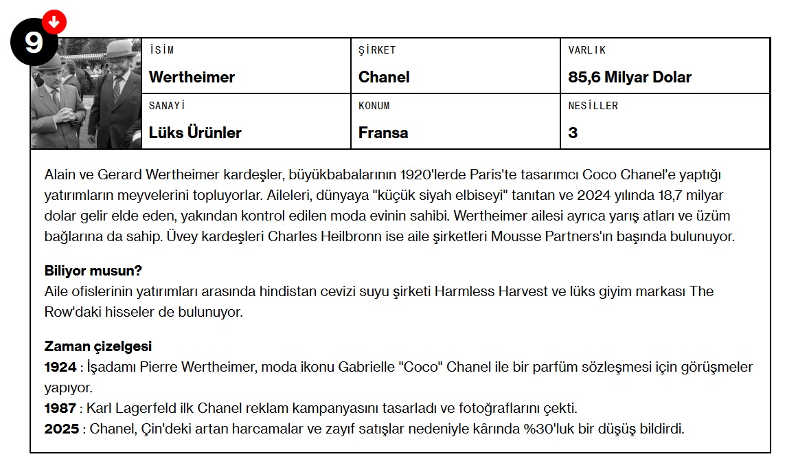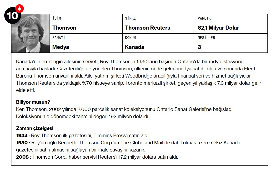 Fransa’nın lüks moda devleri Hermes ve Wertheimer (Chanel) aileleri, zanaatkarlık ve marka değeriyle servetlerini koruyarak listede üst sıralarda yer buldu. Kanada'nın medya devi Thomson ailesi ise özellikle Reuters bağlantısıyla küresel bilgi akışındaki etkisini servete dönüştürmeye devam ediyor.