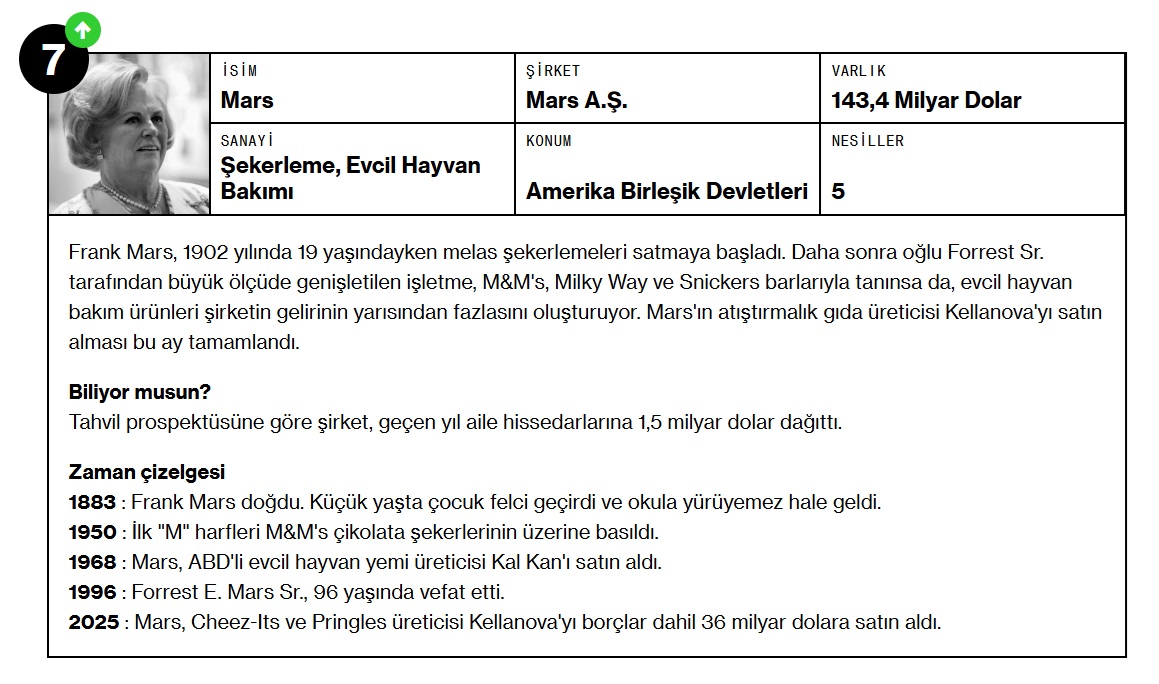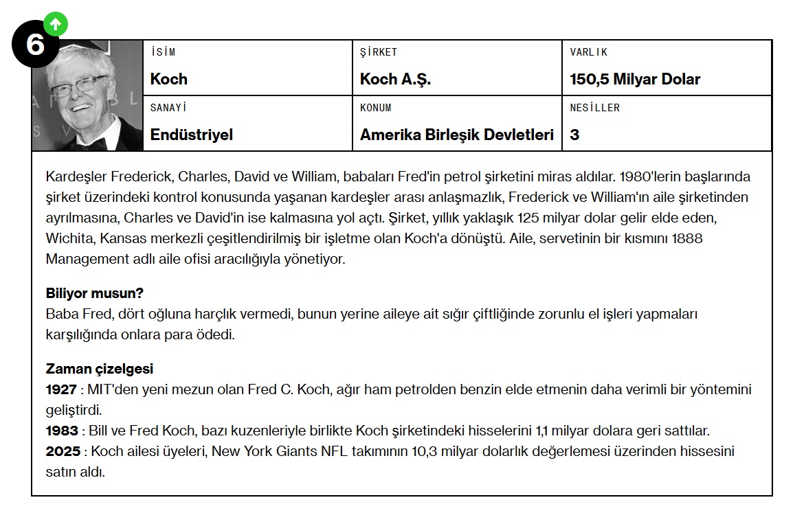Bloomberg, 2025 yılının en yüksek servetine sahip ailelerini açıkladı. Liste; perakendeden enerjiye, lüks modadan medyaya kadar geniş bir yelpazeye yayılan ailelerin sadece ekonomik gücünü değil, aynı zamanda küresel siyaset ve ticaret üzerindeki devasa etkilerini de gözler önüne seriyor.