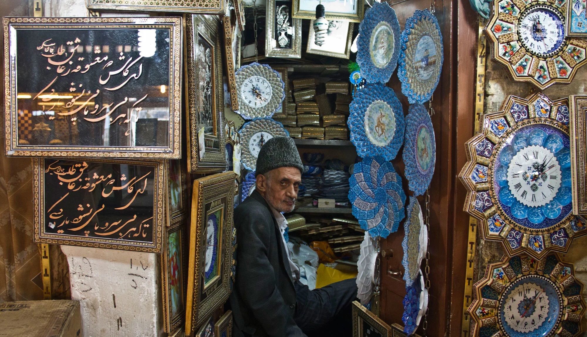 (Zenginleştirme: Çarşıların tarihi ve politik referansları) İsfahan Çarşısı'nda görüldüğü gibi, satıcıların tezgâhları bazen bir antika dükkânı gibi işlev görür. Hitler'den Ayetullah Humeyni'ye, Musaddık'tan Pehlevi krallarına kadar pek çok tarihi figürün fotoğraflarının satıldığı vitrinler, çarşıların aynı zamanda ülkenin kolektif hafızasını taşıyan sosyo-politik mekânlar olduğunu gösterir.