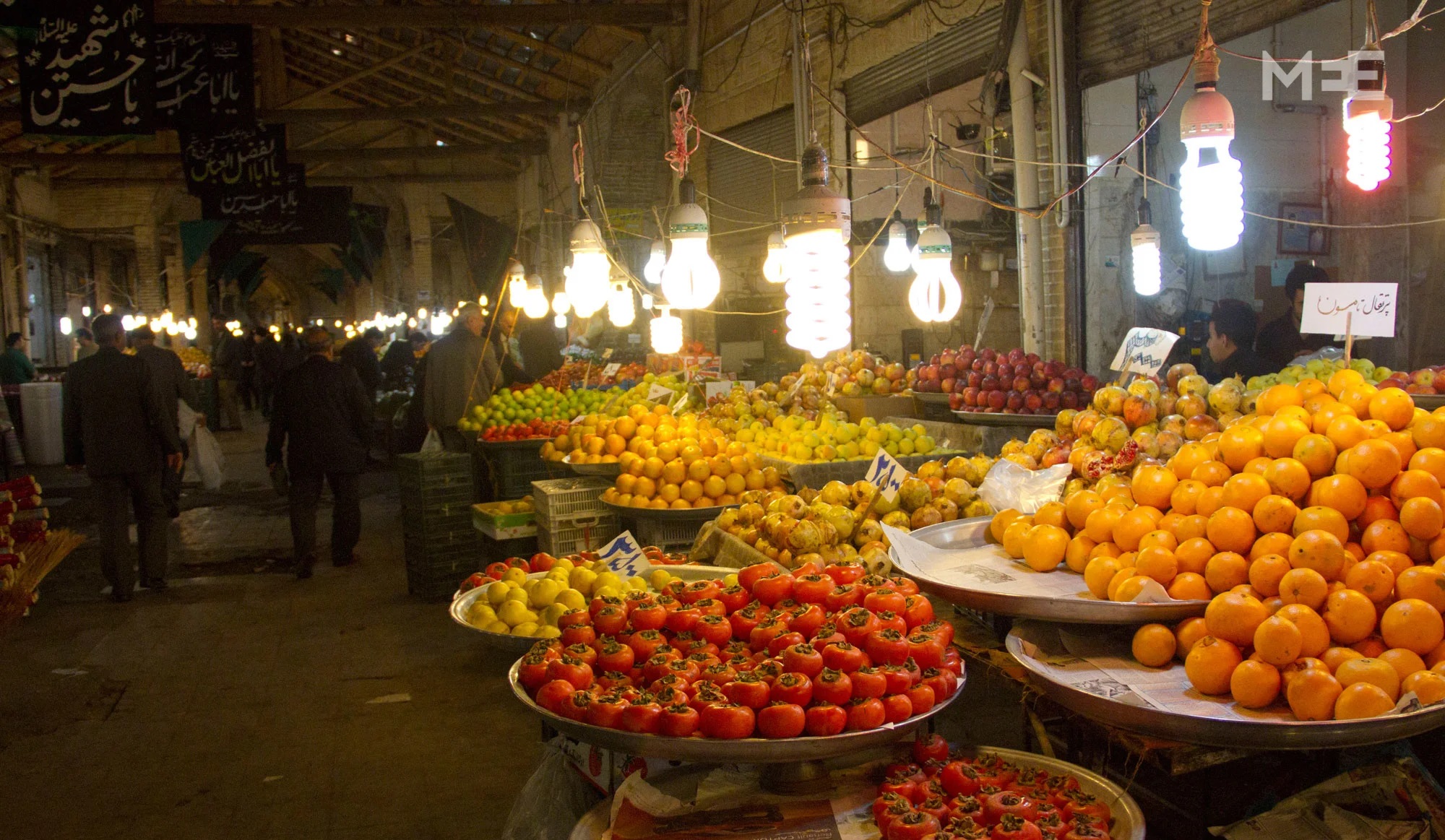 İsfahan'ın Chaysaray Khajeh avlusuna gece vakti mal getiren meyve satıcısı arabaları, İran çarşılarının sadece gündüz değil, gece de bir yaşam döngüsüne sahip olduğunu gösterir. Bu çarşılar, geleneksel esnafın erken saatlerde taze mallarını alıp sattığı, dolayısıyla kesintisiz bir ticaret ve emek zincirini temsil eden dinamik yapılardır.