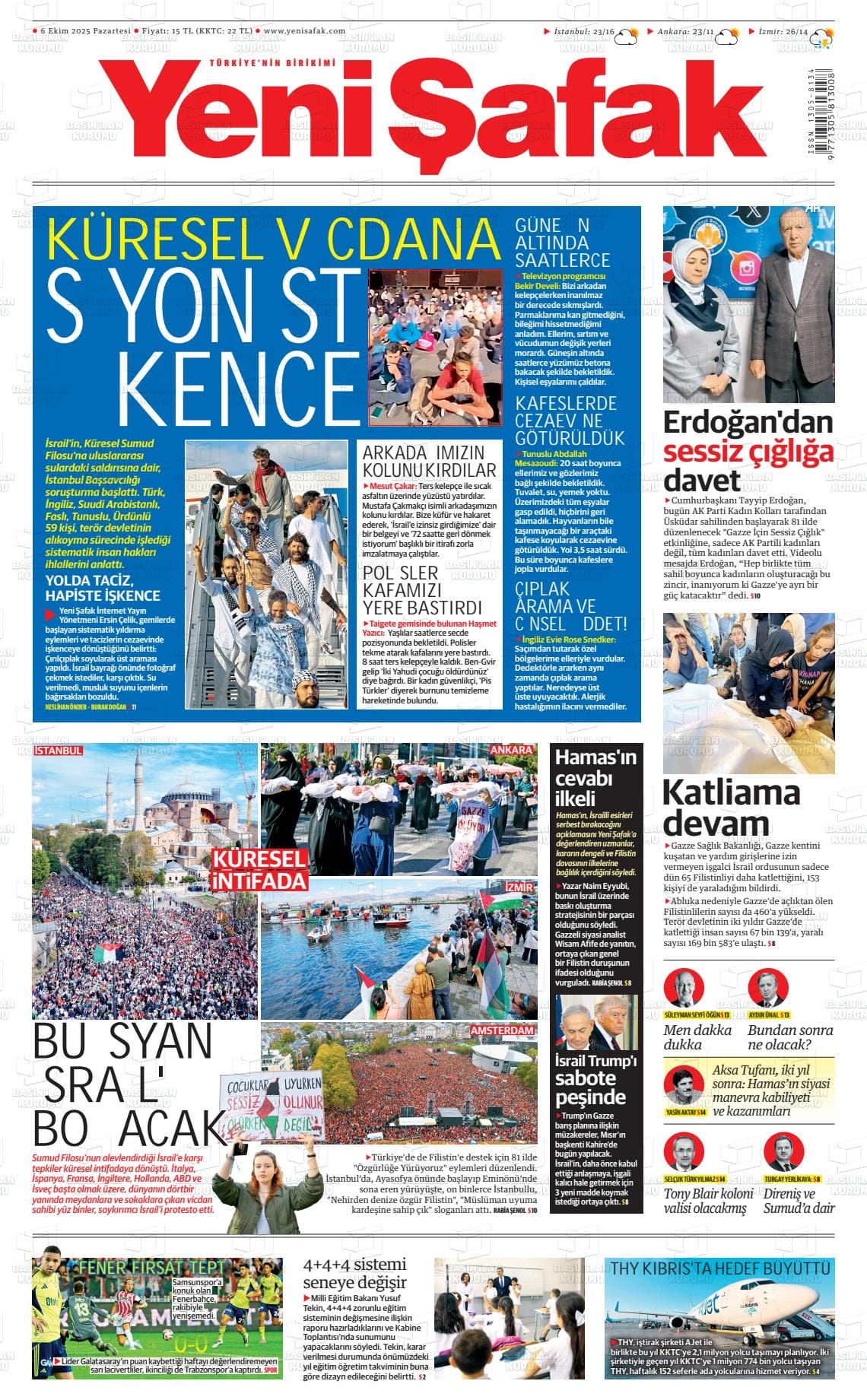 06 Ekim Pazartesi 2025 tarihli manşeti; YENİ ŞAFAK gazetesi ilk sayfası