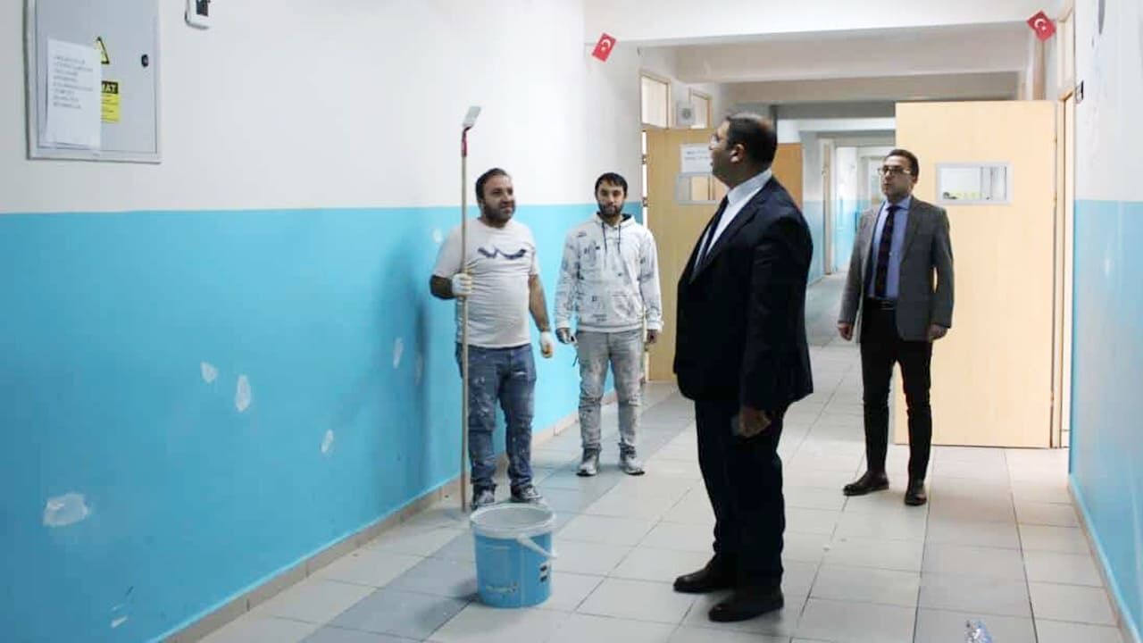 Ziyaret sırasında okulda yürütülen tadilat ve düzenleme çalışmalarını inceleyen Müdür Nurses, öğrencilerimizin daha sağlıklı ve güvenli bir eğitim ortamında öğrenim görmeleri amacıyla gerçekleştirilen çalışmalar hakkında okul idaresinden bilgi aldı.