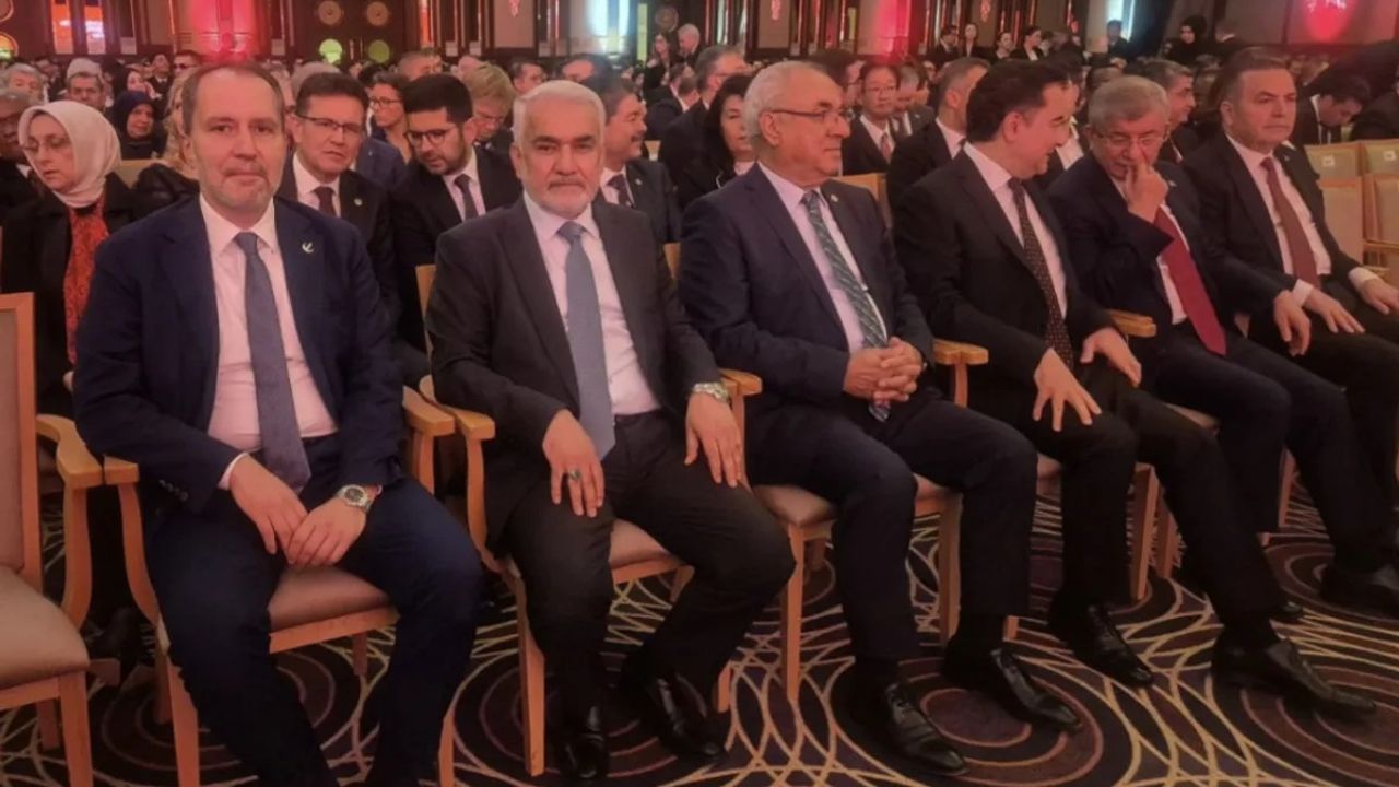 Resepsiyonda, siyasi liderlerin yan yana poz verdiği bir kare dikkat çekti. Bu karede, HÜDA PAR Genel Başkanı Zekeriya Yapıcıoğlu'nun yanı sıra Ali Babacan, Ahmet Davutoğlu, Yeniden Refah Partisi Genel Başkanı Fatih Erbakan ve DSP Genel Başkanı Önder Aksakal yer aldı.