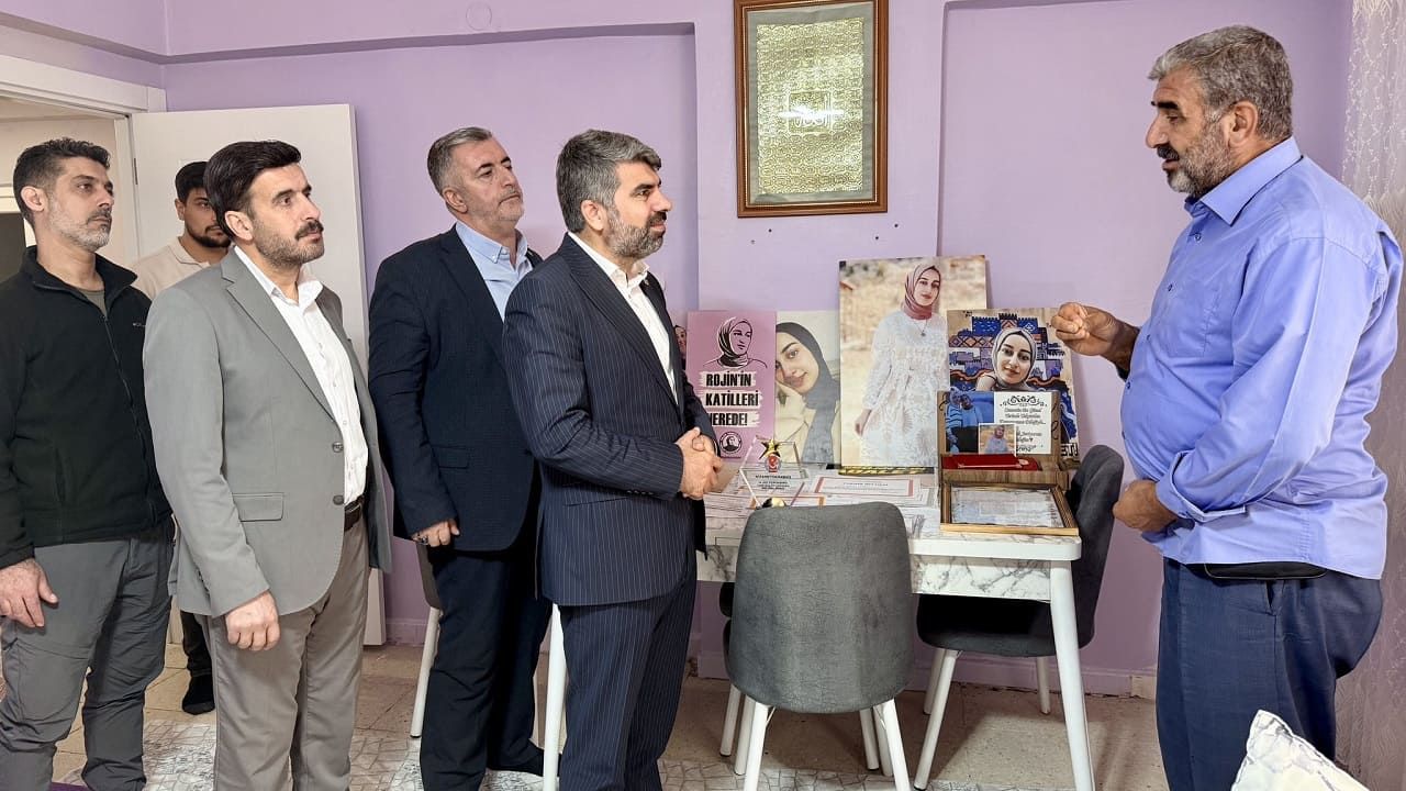 Van’da kaybolduktan 18 gün sonra cansız bedeni bulunan Rojin Kabaiş’in şüpheli ölümü henüz aydınlatılamadı. Ailenin adalet arayışı devam ederken HÜDA PAR Mersin Milletvekili Faruk Dinç, baba Nizamettin Kabaiş’i evinde ziyaret etti.
