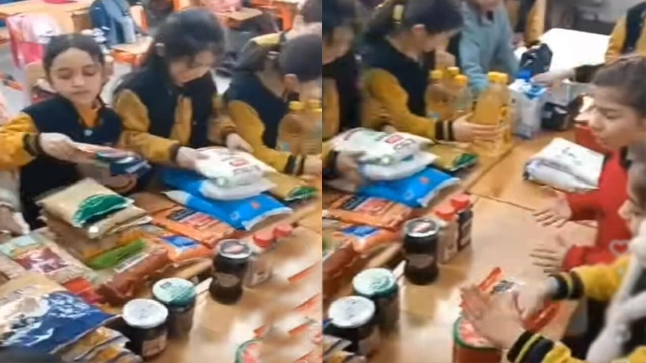 Okul yönetimi, öğretmenler ve gönüllü öğrencilerin katkılarıyla hazırlanan Ramazan kolileri; temel gıda malzemelerini içerecek şekilde titizlikle paketleniyor.