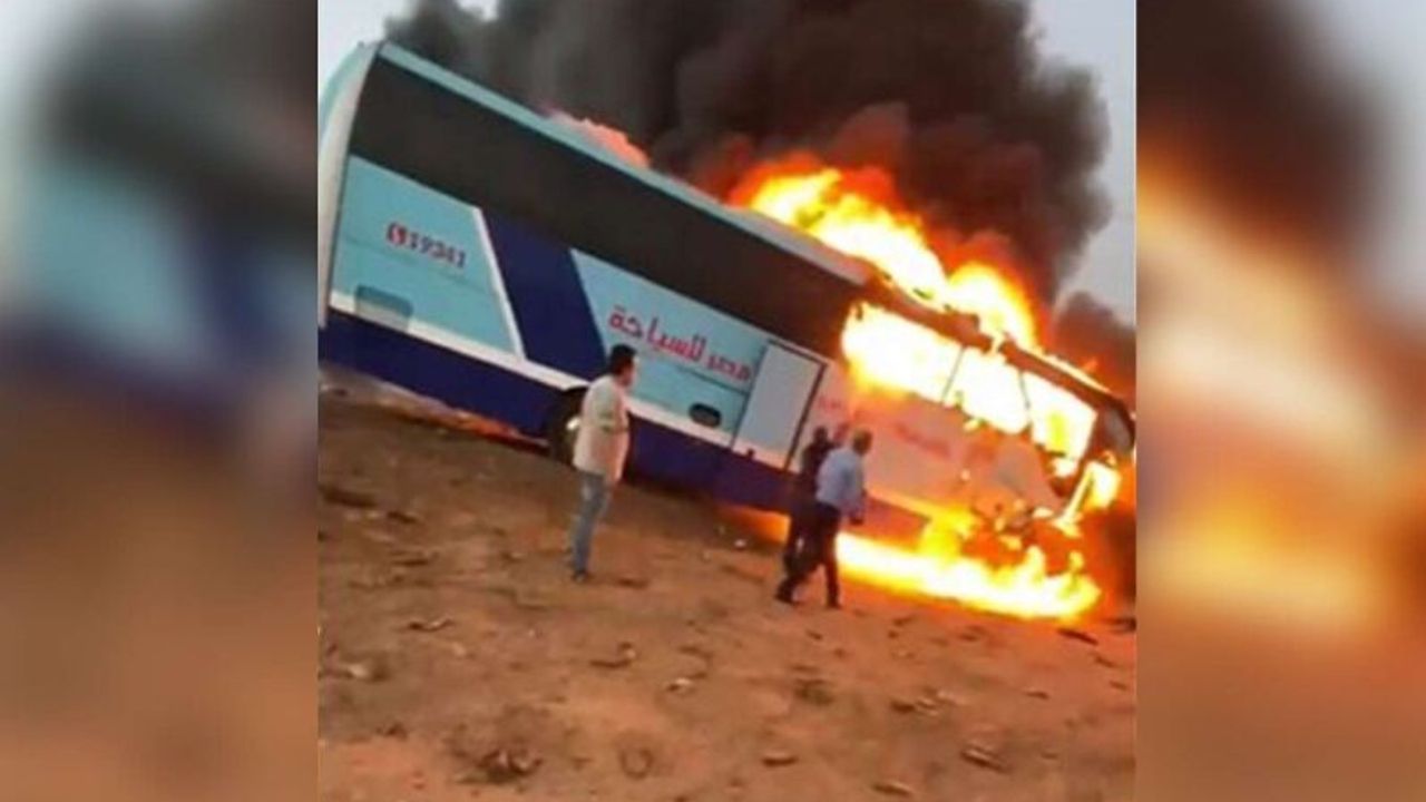 Kaza, yerel saatle sabahın erken saatlerinde Aswan kenti ile Abu Simbel Tapınağı arasında meydana geldi. Edinilen bilgilere göre, turistleri taşıyan bir otobüs ile otomobil çarpıştı. Çarpışmanın etkisiyle yolcu otobüsü alev aldı.