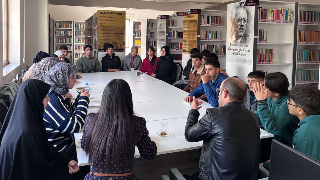 Proje kapsamında ilçede eşleştirilen liselerden seçilen 10’ar kişilik öğrenci grupları, her ay belirlenen kitabı okuyarak kütüphanede bir araya geliyor ve eser üzerine değerlendirmelerde bulunuyor. Bu ayın kitabı, Kemal Sayar’ın ‘Yavaşla’ adlı eseri oldu.
