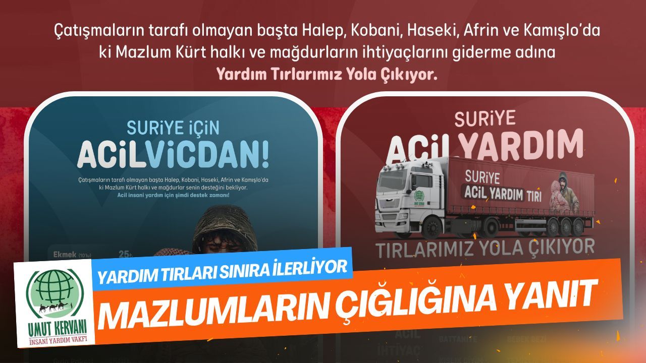 Çatışmaların tarafı olmayan Halep, Afrin, Kobani, Haseki ve Kamışlo'da ki mazlum ve mağdur kardeşlerimizin ihtiyaçlarını karşılamak için tırlarımız yola çıkıyor.