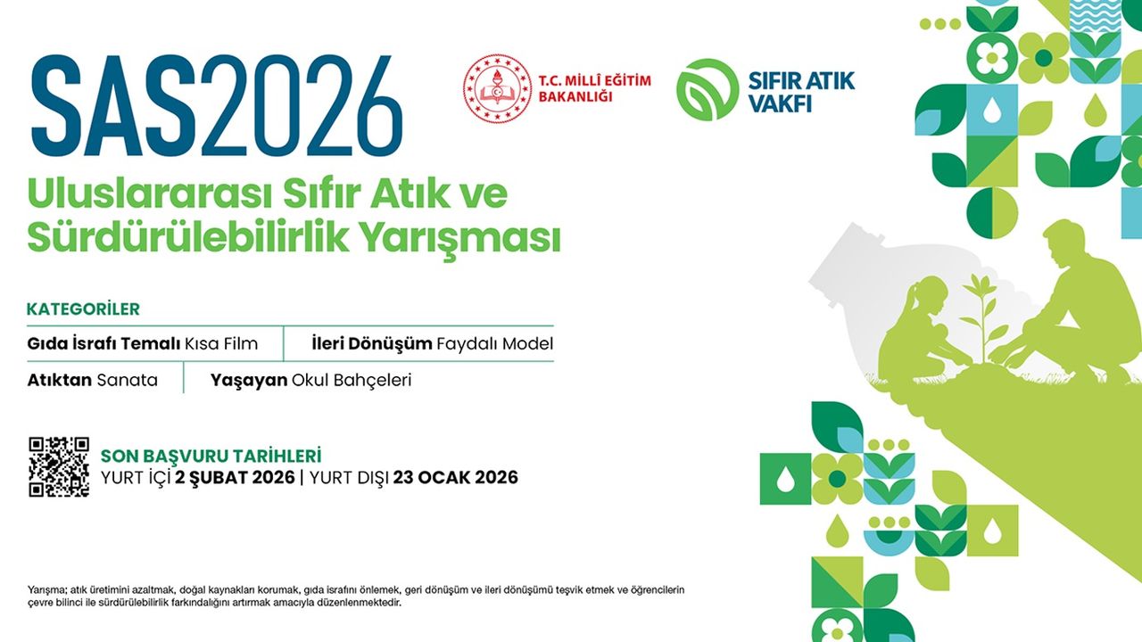 Millî Eğitim Bakanlığı (MEB) tarafından, öğrencilerin çevre bilincini artırmak ve çevre dostu uygulamaları desteklemek amacıyla düzenlenen "2026 Uluslararası Sıfır Atık ve Sürdürülebilirlik Yarışması"nın başvuruları başladı. MEB Destek Hizmetleri Genel Müdürlüğü'nün Sıfır Atık Vakfı işbirliğiyle düzenlediği bu yarışmaya, ulusal düzeyde Türkiye'deki tüm resmi ve özel okullar ile öğrenciler katılabilecek. Uluslararası düzeyde ise Bakanlığa bağlı eğitim müşavirlikleri, ataşelikler veya Türkiye Maarif Vakfı okullarının bulunduğu ülkelerde öğrenim gören öğrenciler ve okullar katılım sağlayabilecektir. Yarışmanın hedefleri arasında atık üretimini azaltmak, sürdürülebilir yaşam kültürünü yaygınlaştırmak ve uluslararası düzeyde farkındalık oluşturacak yenilikçi projeler geliştirmek yer almaktadır.