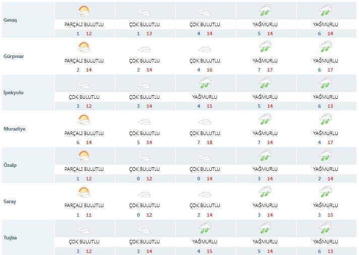 Van’da hava koşullarında değişim yaşanmaya devam ediyor. Meteorolojin tahminlere göre Van genelinde yağışlı hava Cuma ve Pazar günü etkisini gösterecek.