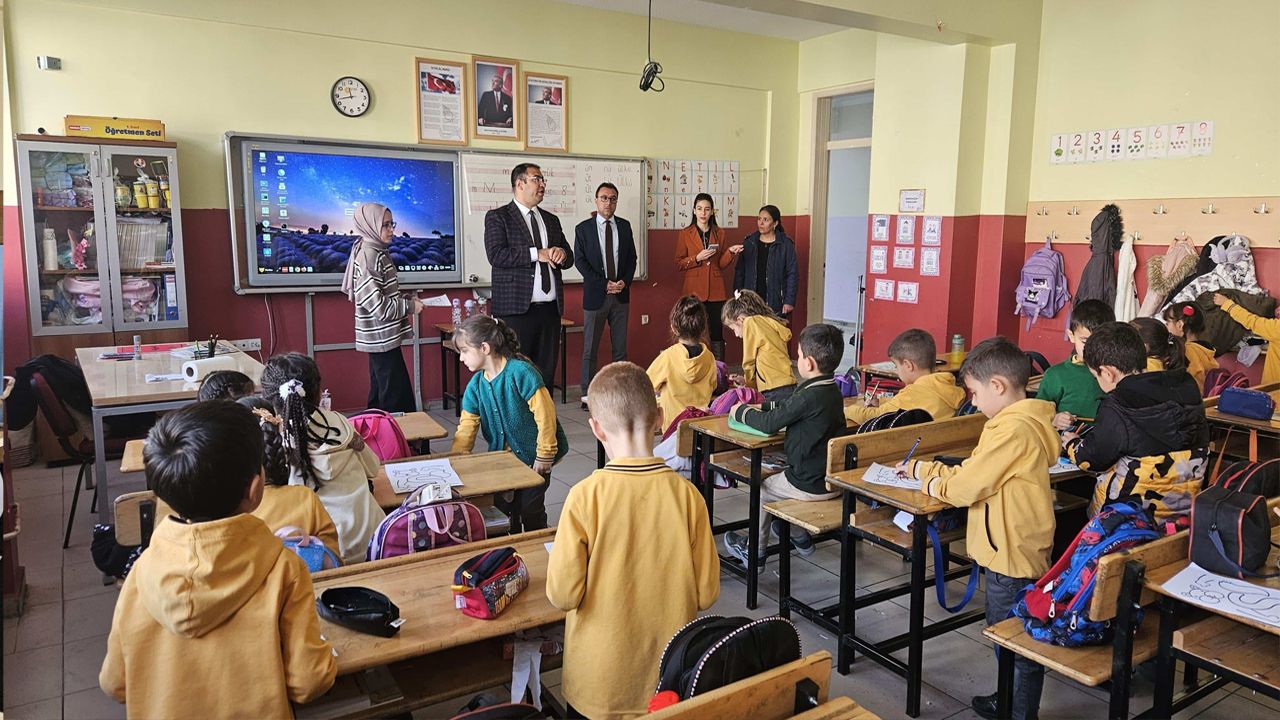 Ziyaret kapsamında sınıfları gezen Edremit Millî Eğitim Müdürü Doğan Nurses ve Şube Müdürü Cihangir Acar, öğrencilerle sohbet ederek ders ortamını yerinde gözlemledi.