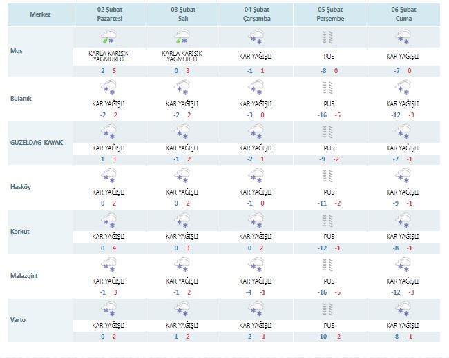 İŞTE MUŞ’TA 5 GÜNLÜK HAVA DURUMU