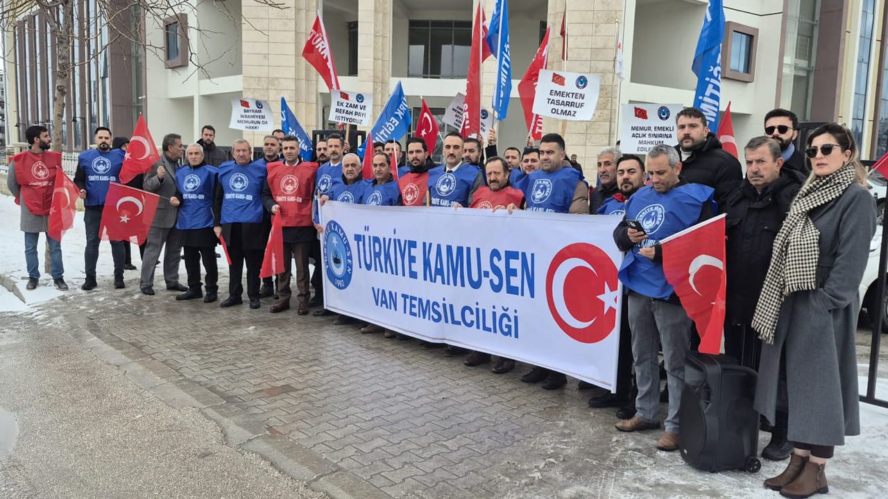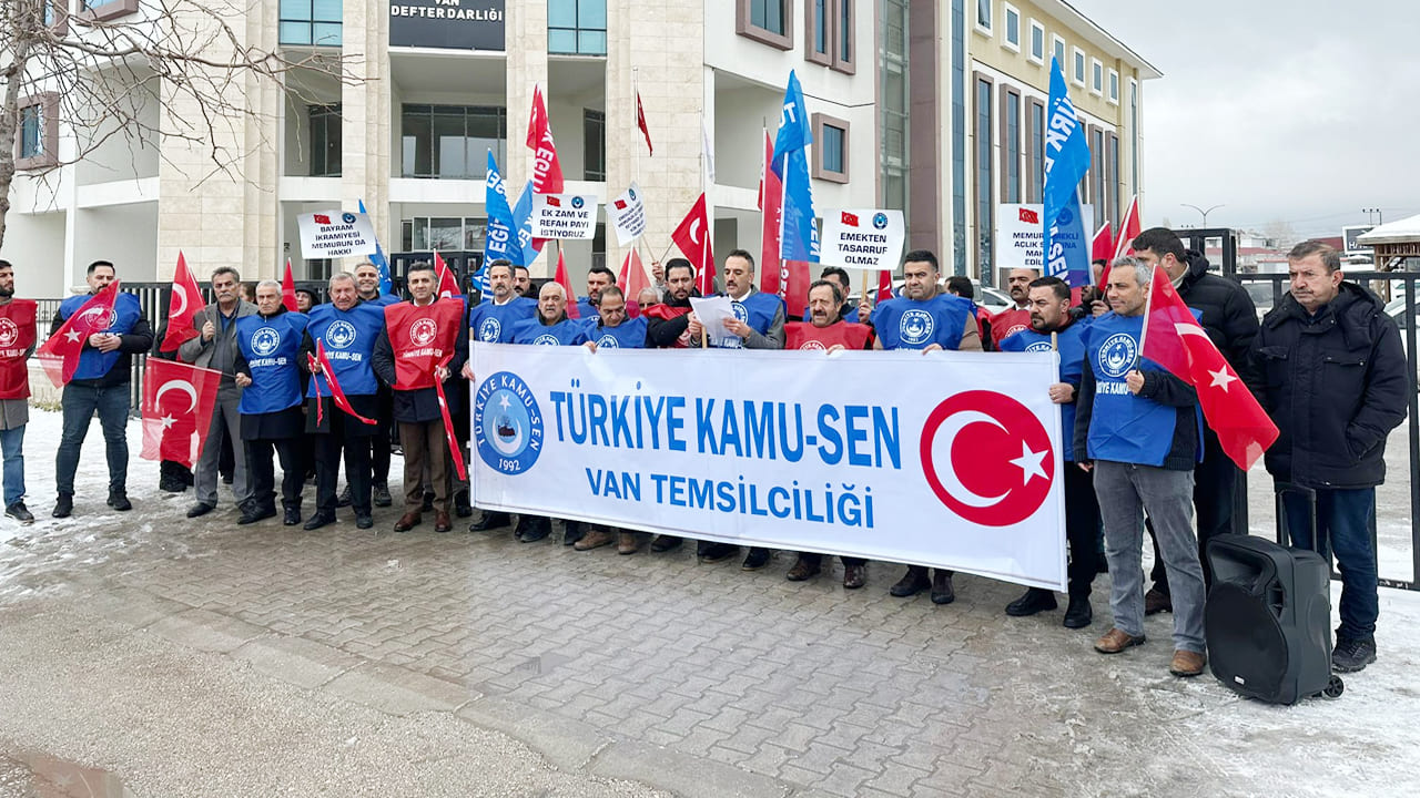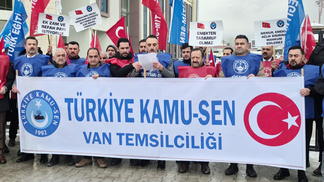 Türkiye Kamu-Sen Van İl Temsilciliği, kamu çalışanları ve emeklilerin yaşadığı ekonomik sıkıntılara dikkat çekmek amacıyla Van Defterdarlığı önünde basın açıklaması yaptı.