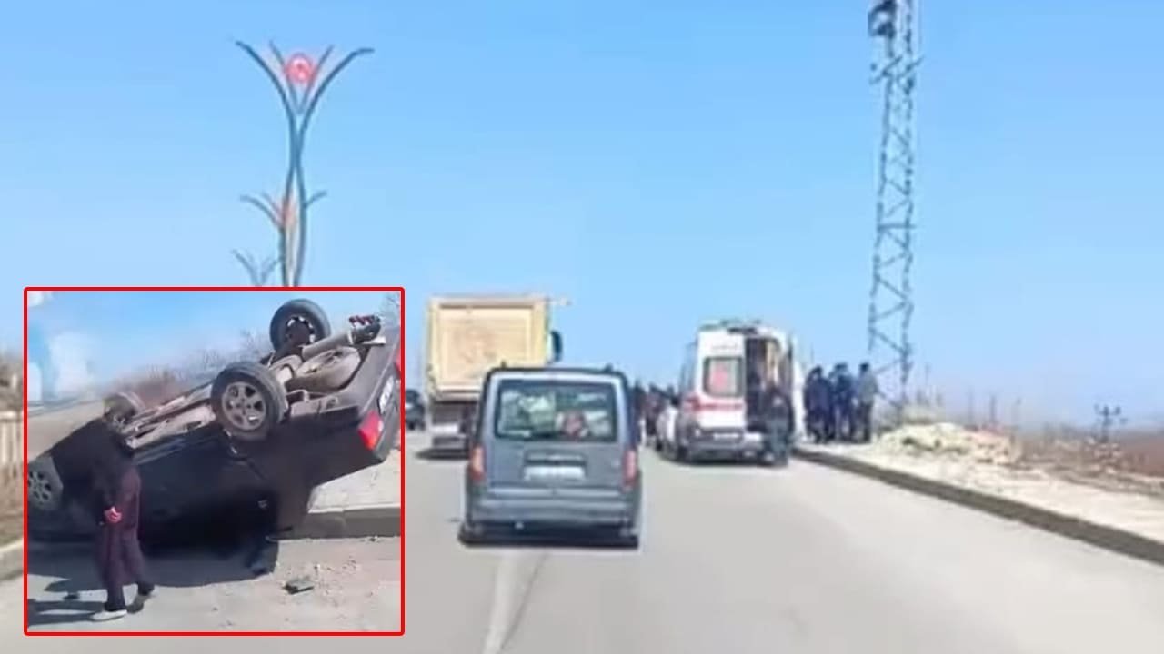 Çarpışmanın etkisiyle bir otomobil takla atarak ters dönerken, araç içerisinde bulunan 2 kişinin yaralandığı öğrenildi.
