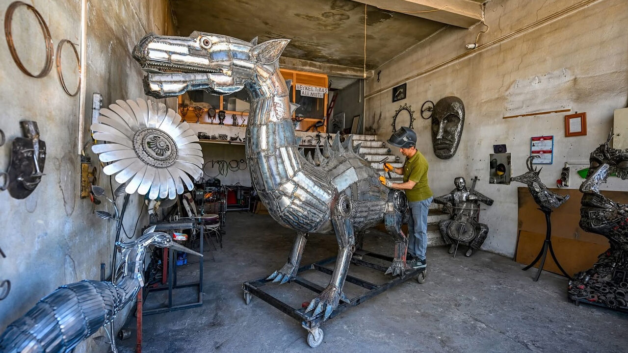 İranlı heykeltıraş Ali Mutii, hurdacılardan topladığı inşaat demirleri, zincir, vida, motor parçaları, çivi, disk ve su tesisatı malzemeleri gibi atık malzemeleri bir araya getirerek, sanata dönüştürüyor. Kentin sembollerinden biri olan Van kedisinin ardından, efsanelere konu olan Van Gölü Canavarı’nı da sanatsal bir figür haline getirdi.