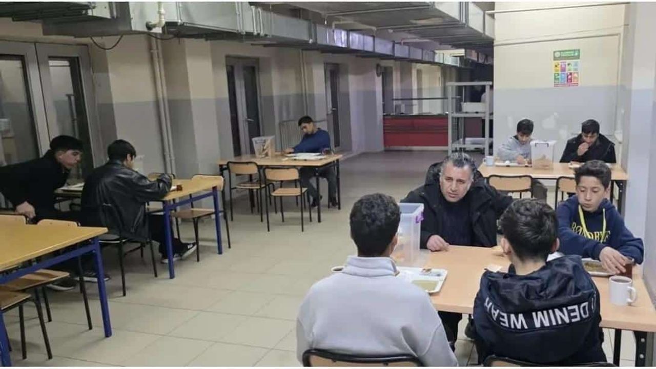 Sahur sofrasında öğrencilerle sohbet eden Yeşilova, talep ve önerileri dinleyerek eğitim ve pansiyon yaşamları hakkında değerlendirmelerde bulundu.