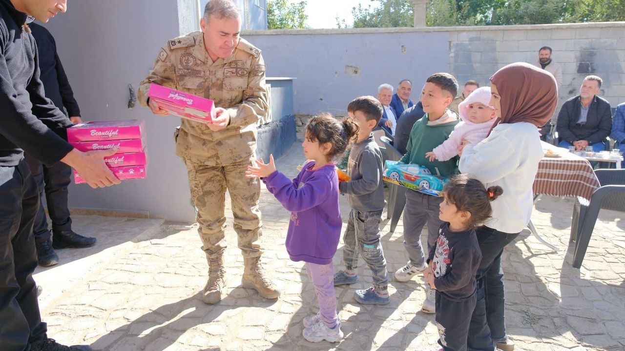 Tuğgeneral Avkıran, mahallede karşılaştığı çocuklara da oyuncak hediye etmeyi ihmal etmedi.