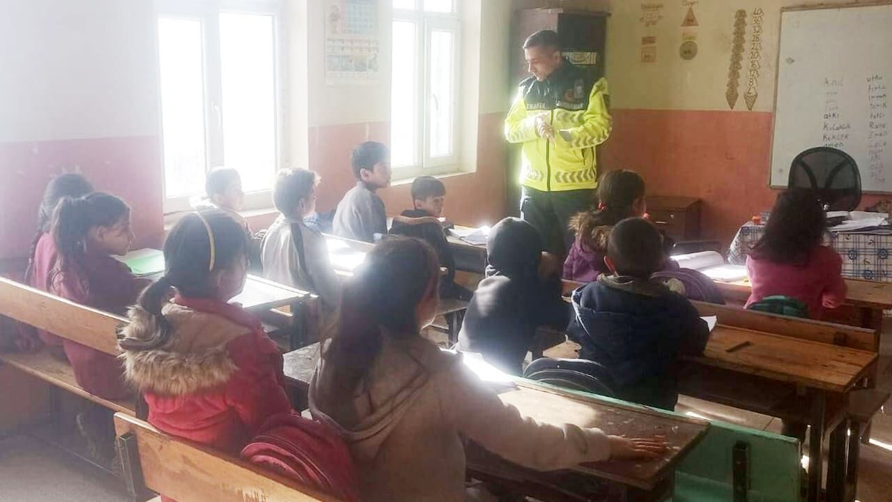 Van İl Jandarma Komutanlığı tarafından gerçekleştirilen eğitimde karşıdan karşıya geçme kuralları, emniyet kemeri kullanımı, kask takmanın önemi, araçlara güvenli binme ve inme ile temel trafik kuralları hakkında öğrencilere bilgilendirme yapıldı.