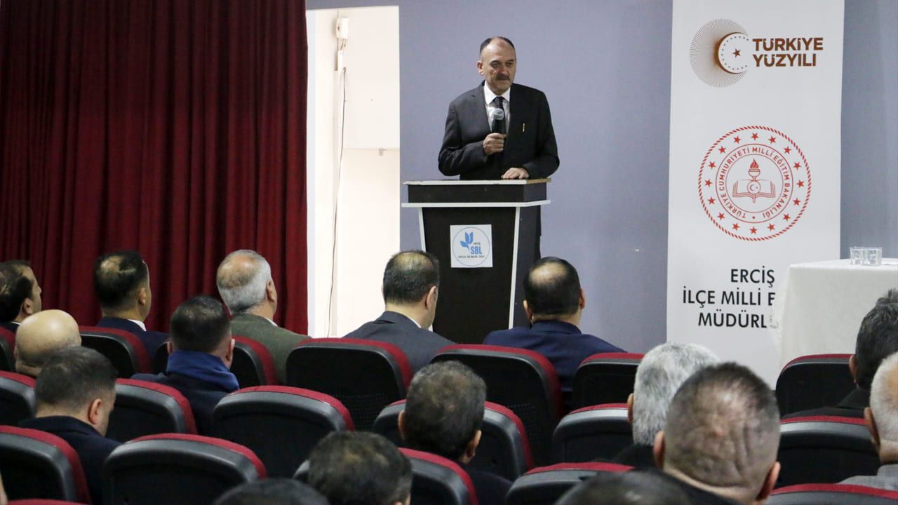 Ardından Erciş İlçe Millî Eğitim Müdürlüğünü ziyaret eden Müdür Çandıroğlu, okul müdürlerinin katılımıyla bir değerlendirme toplantısı gerçekleştirdi. Toplantıda eğitimde kaliteyi artırmaya yönelik çalışmalar, mevcut durum ve hedefler ele alındı.