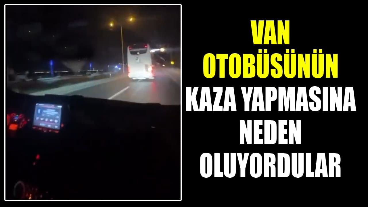 Sürücü, makas atarak önündeki Van otobüsüne çok yakın bir mesafeden geçiyor ve otobüsün kontrolünü kaybetmesine ramak kalıyor.