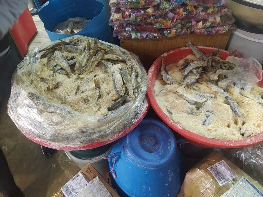 Van Peynirciler Çarşısı’nda satılan tuzlu inci kefali balığı 50 TL’den satışa sunuluyor.