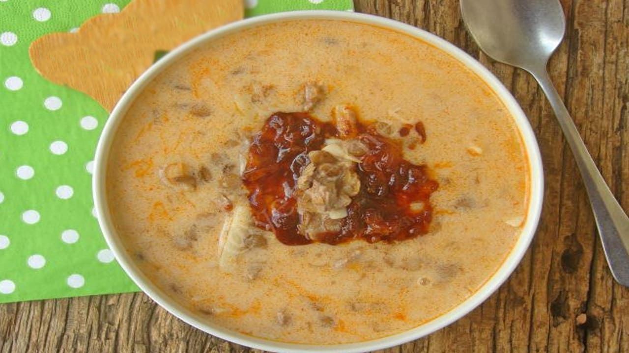 Çorbanızı sıcak olarak, üzerine hazırlanan sos dökülmüş şekilde servis edin. Yanına sıcak bir köy ekmeğiyle harika gider.
