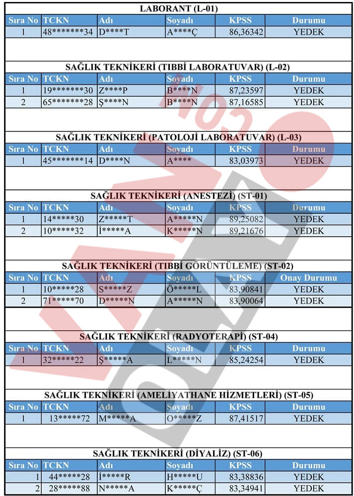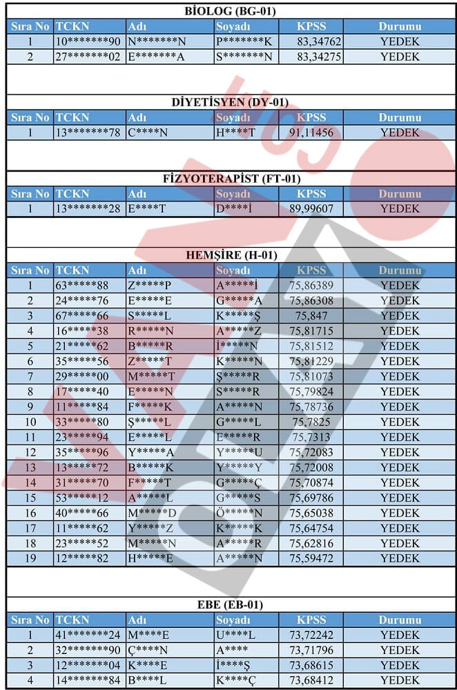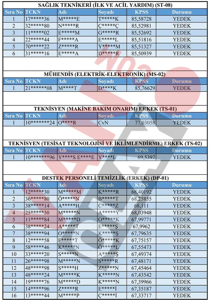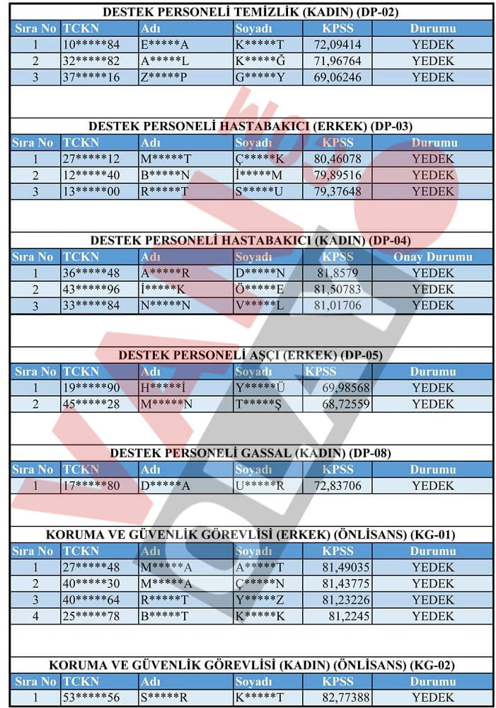 Yapılan değerlendirme sonucunda asil listede yer almasına rağmen belirtilen süre içerisinde gerekli belgeleri teslim etmeyen adaylar haklarından feragat etmiş sayılacak. Bu durumda boş kalan kadrolar için yedek listeden sırayla yerleştirme yapılacak.