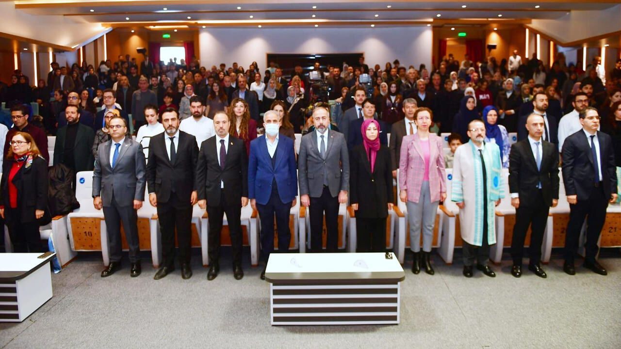 Açılış konuşmalarının ardından akademik unvan alan öğretim üyeleri için biniş giyme töreni icra edildi.