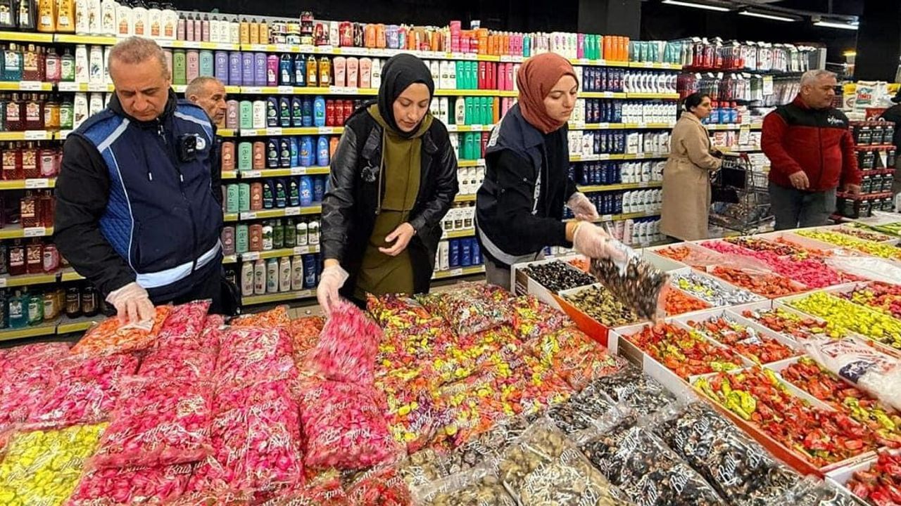 Marketlerde ise bayram şekerleri ve paketli gıda ürünleri kontrol edildi.