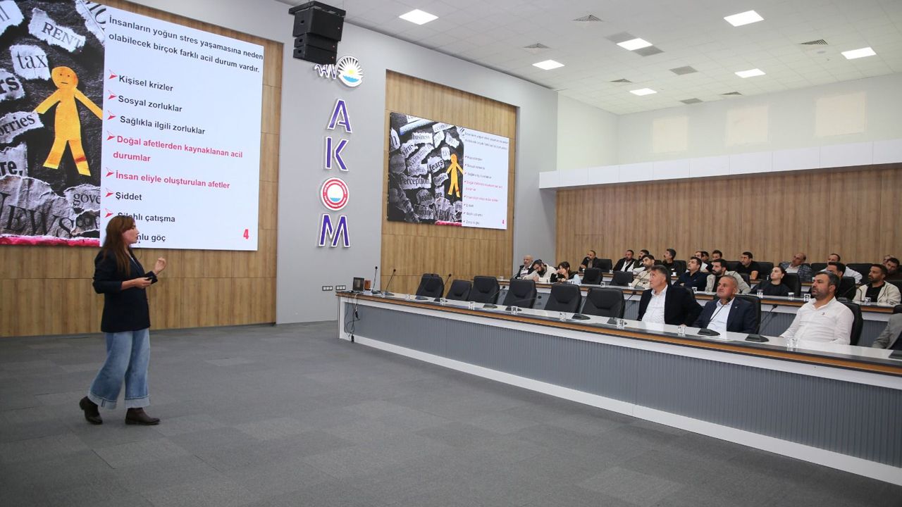 Tüm daire başkanlıkları personellerinin belirli periyotlarla aldığı eğitimlerde, katılımcılara kriz anlarında bireylere doğru yaklaşım sergileme, psikolojik destek sunma ve afet sonrası oluşabilecek travmaların etkilerini azaltma konularında uygulamalı örnekler verildi.