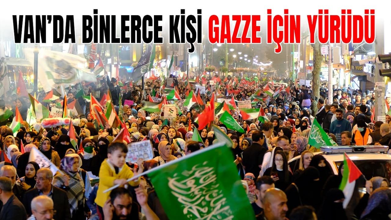 Van’da binlerce kişi, 7 Ekim Aksa Tufanı’nın yıl dönümü dolayısıyla düzenlenen yürüyüşte bir araya geldi.