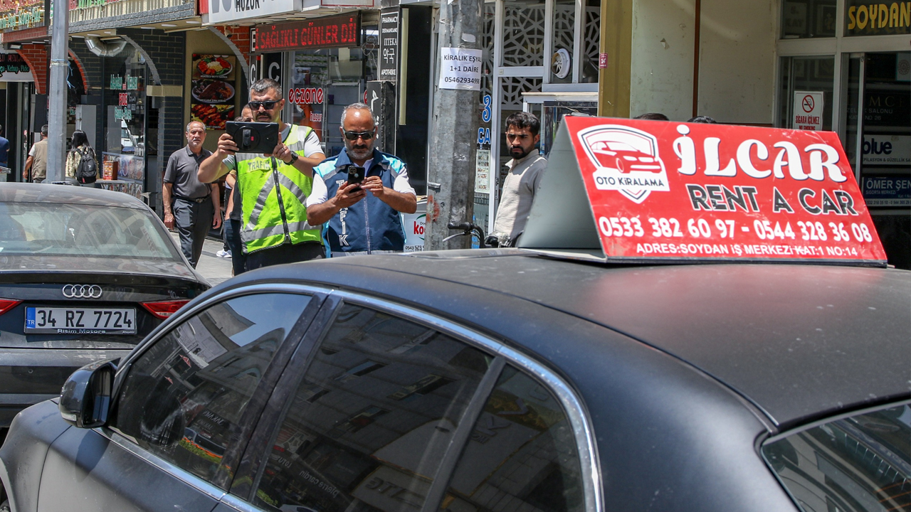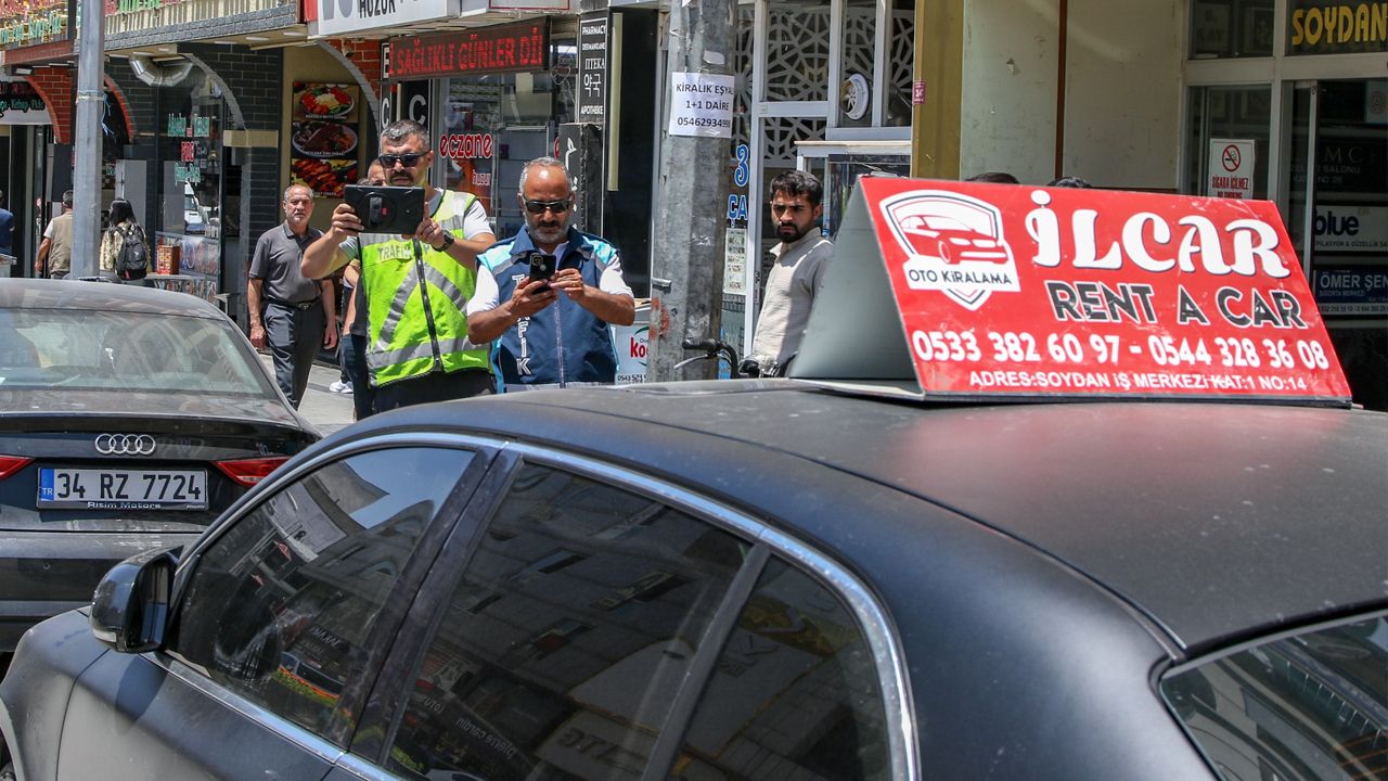 Kent merkezinde çekilen görüntülerde, cadde kenarına park edilmiş araçların hemen yanında elektrik trafosu üzerine veya yanına bırakılmış Rent A Car tabelaları dikkat çekiyor. Firmaların bu uygulamayla cezadan kurtulmayı amaçladığı, ancak uygulamanın kural tanımazlık olduğu vurgulanıyor.