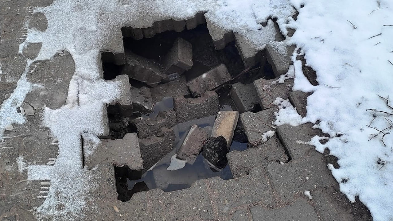Kar ve buzlanmanın da etkili olduğu bölgede, çukurun fark edilmesinin zorlaşması olası kazalara davetiye çıkarıyor.