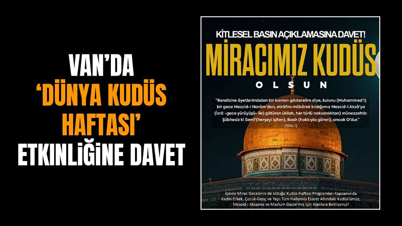 Dünya Müslümanları tarafından 1979 yılından beri Ramazan ayının son Cuma günü, "Dünya Kudüs Günü" olarak idrak ediliyor. Bu kapsamda dünyanın birçok yerinde olduğu gibi Van’da da kitlesel basın açıklaması düzenlenecek.