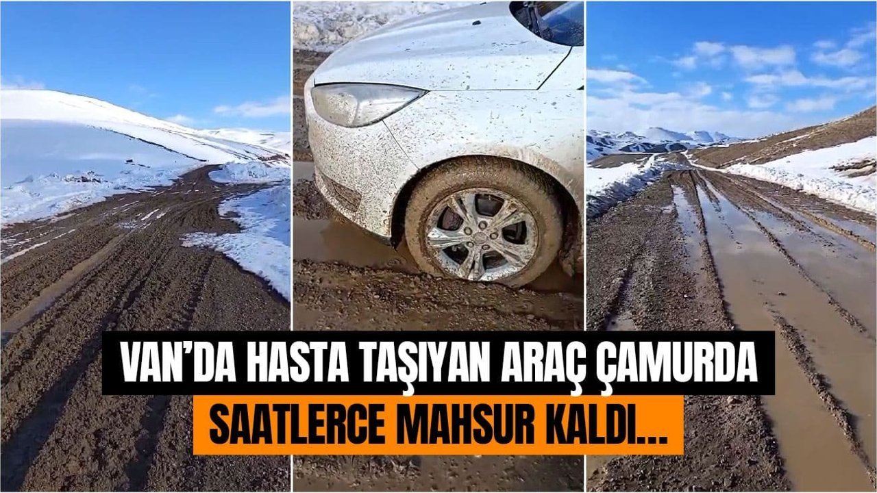 Gürpınar ilçesine bağlı Çepkenli – Çatakdibi Mahalle yolunda hasta taşıyan bir araç, çamur deryasına dönen yolda mahsur kaldı.