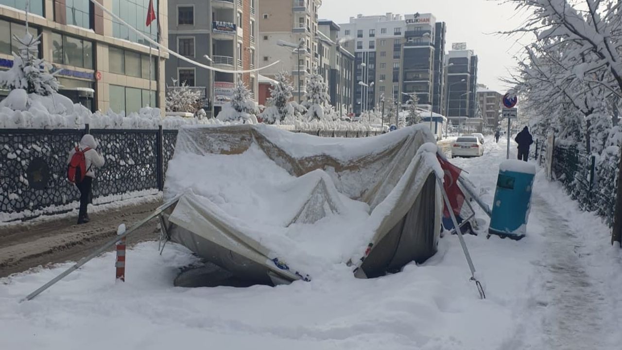 Kent genelinde etkili olan yoğun kar yağışı nedeniyle eylem çadırı çökerken, olayda herhangi bir can kaybı ya da yaralanma yaşanmadığı öğrenildi.