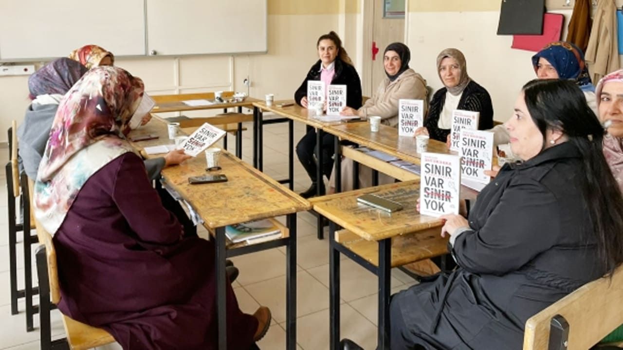 Ardından okul ortamında düzenlenen buluşmalarda, kitaplar üzerinden ebeveynlik, sağlıklı iletişim ve aile içi paylaşımlar üzerine karşılıklı değerlendirmeler yapılıyor.