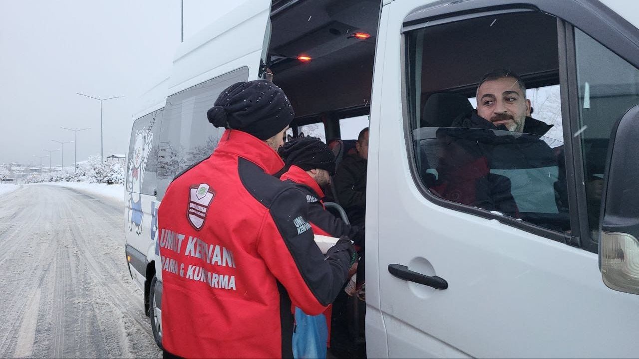 Bölgeden gelen ihbarlar üzerine hızlı bir şekilde harekete geçen Umut Kervanı ekipleri, kar nedeniyle ilerleyemeyen araçlara yerinde destek sağladı.