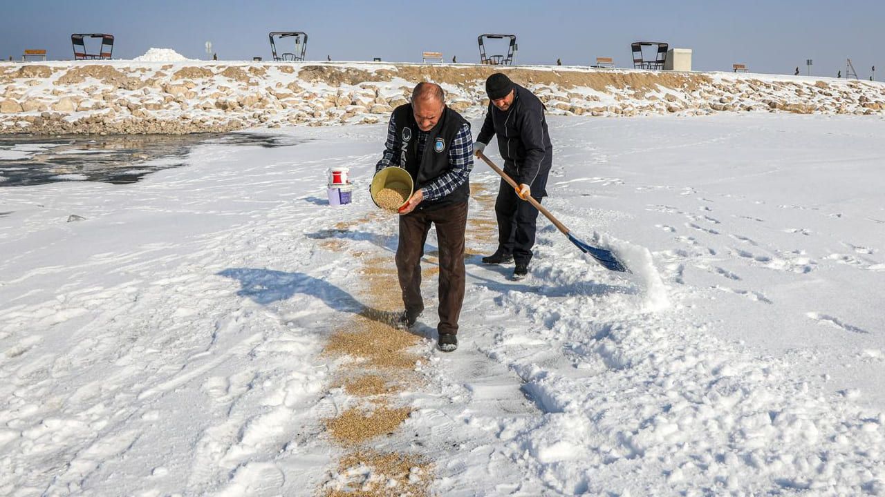 Aşırı soğuklar nedeniyle yiyecek bulmakta güçlük çeken yaban hayatı için Zabıta Dairesi Başkanlığı ekipleri, kentin belli noktalarına her gün yem bırakıyor.