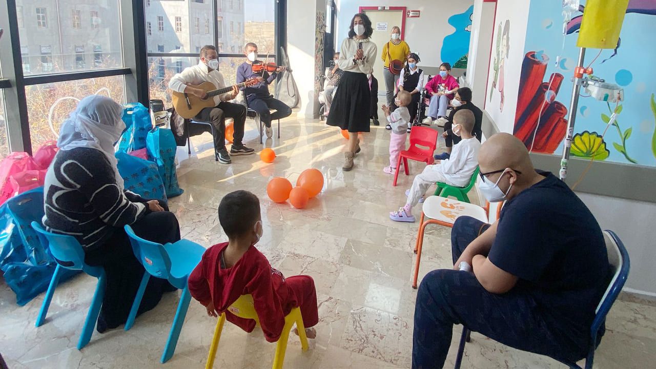 Etkinlik kapsamında, çocuklara yalnız olmadıkları hissettirilerek moral ve motivasyon desteği sunuldu. Konservatuvar ekibinin sahne aldığı program, hastane personeli ve ailelerin de katılımıyla sıcak bir atmosferde tamamlandı.