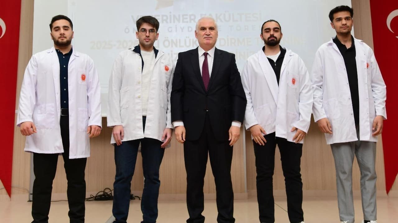 Törenin devamında, mesleki aidiyetin sembolü olan beyaz önlüklerini giyen birinci sınıf öğrencileri, veteriner hekimlik mesleğine adım atmanın heyecanını yaşadı.