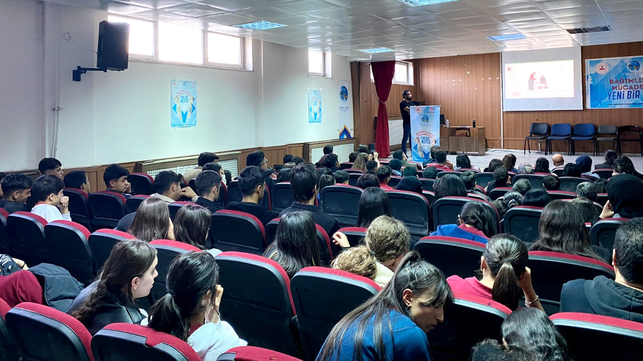 Van İl Sağlık Müdürlüğü Halk Sağlığı Başkanlığı ile yapılan kurumsal iş birliği doğrultusunda düzenlenen seminere, Psikolog Leyla Edemen Sahar ve Sosyal Hizmet Uzmanı Mehmet Vefa Narman konuşmacı olarak katıldı. Uzmanların etkili sunumlarıyla gençlere bağımlılıkların bireysel, sosyal ve psikolojik etkileri anlatıldı, mücadele yöntemleri konusunda farkındalık oluşturuldu.
