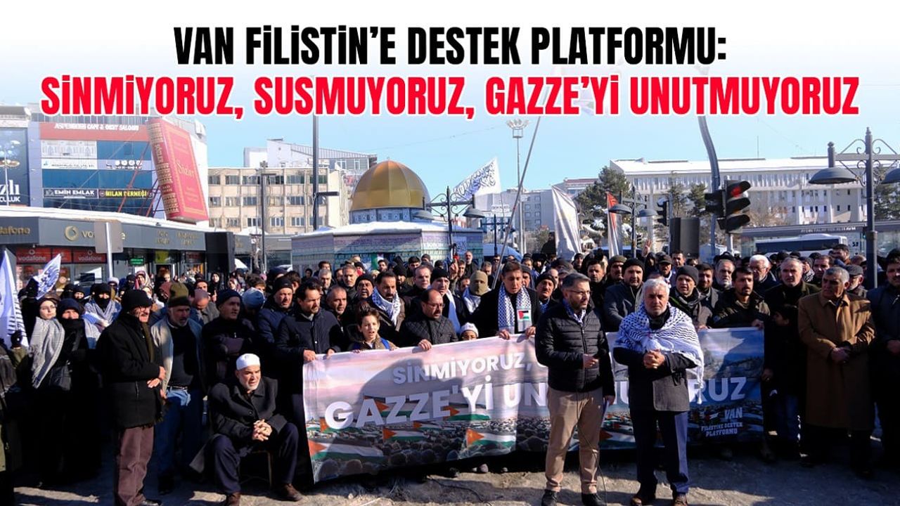 Van Filistin’e Destek Platformu öncülüğünde sivil toplum kuruluşlarının katılımıyla düzenlenen "Sinmiyoruz, susmuyoruz, Filistin'i unutmuyoruz" temalı basın açıklamasında Gazze’de ateşkese rağmen devam eden saldırılar ve soğuk hava ile açlık nedeniyle hayatını kaybeden sivillere dikkat çekti.