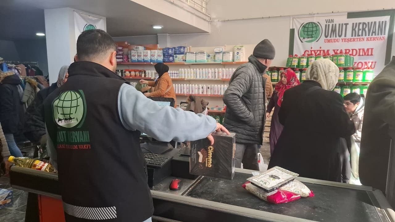 Van Umut Kervanı İnsani Yardım Derneği, yardım almak için merkeze gelemeyen ailelere yardımları doğrudan evlerine götürürken, diğer aileleri ise sosyal markete davet ederek ihtiyaçlarını karşılamalarını sağladı.